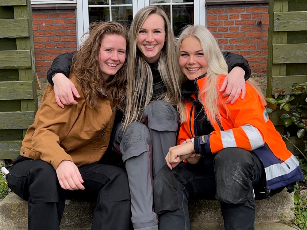 Sandra der står til højre i billede har været tømrer i 9 år. I dag arbejder hun som tømrer og koordinater i Næstved. På hendes Instagramprofil ss_joergensen er hun hudløs ærlig og åben omkring sit liv med panikangst og hvordan det påvirker en hverdag både på arbejdet og privat. I sin fritid er hun gymnast og hygger sig med DIY projekter i hjemmet.